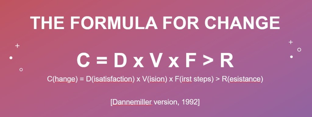 The formula offers 3 ‘levers’ that can be utilised to overcome resistance to change: