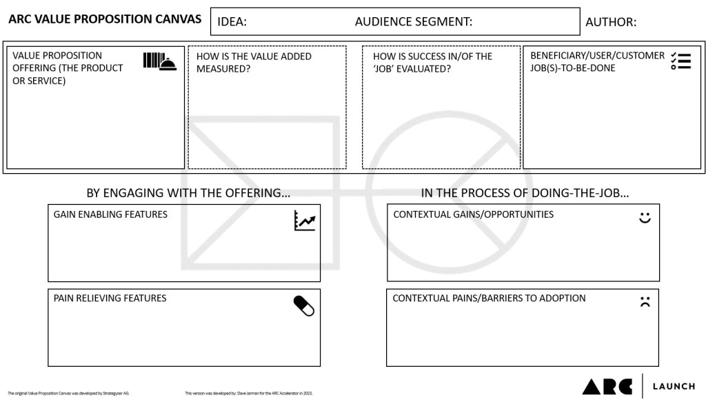 - Rather than refer to ‘Product/Service’ we changed it to ‘Value Proposition Offering’.